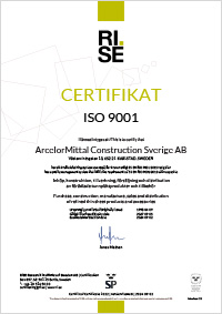 ArcelorMittal Construction Sverige AB skall vara ett företag med stort kvalitetsmedvetande och CE-godkända produkter enligt EU:s regelverk.